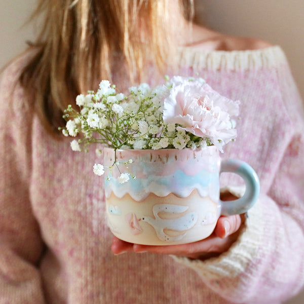 Fargene er inspirert av vinterhimmelen ved soloppgang, med myke pastelltoner som varmer både øyne og hjerte. «Love Messenger» er ikke bare en kopp, men en liten dose magi som gjør hver kopp varm drikke spesiell. Perfekt som gave til kjæresten, en venn eller til deg selv – et krus som varmer hender og hjerter.
